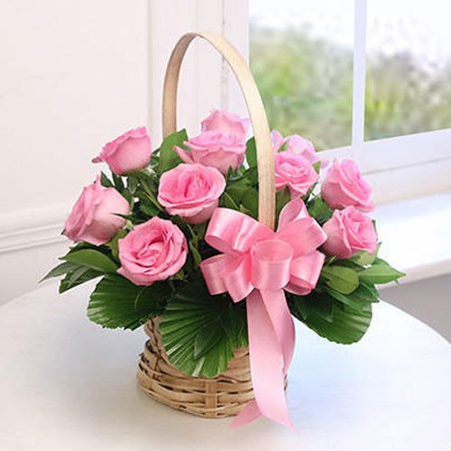12 Stems Pink Basket -