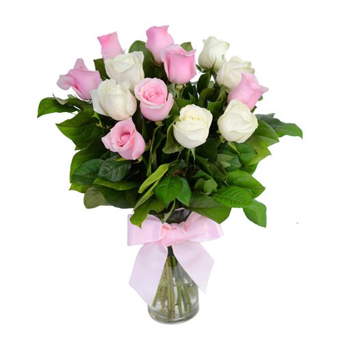 1 Dozen Pink and White Roses Vase -