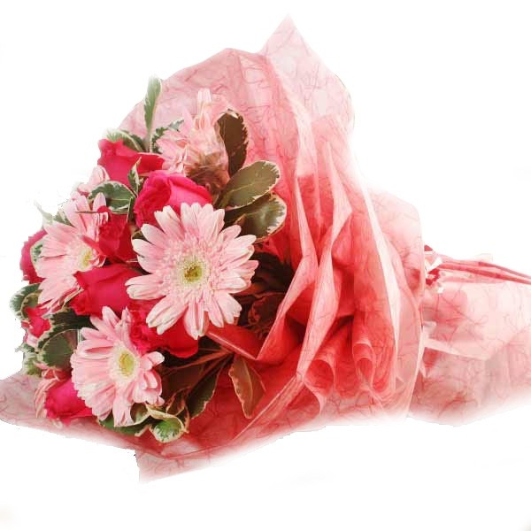 Pink Daisy 10 Stems with Roses -